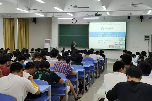 乔印虎在宣讲过程中,详细介绍了安徽科技学院的历史沿革、发展概况、办学定位、办学成果、学校荣誉和学科专业结构、师资队伍实力、教育教学改革、学术贡献度、学科影响力、社会服务情况、人才培养质量、研究生教育情况与办学优势,并对我校2022年研究生招生办法、招生领域、报考条件、资助政策等内容进行了详细解读。
