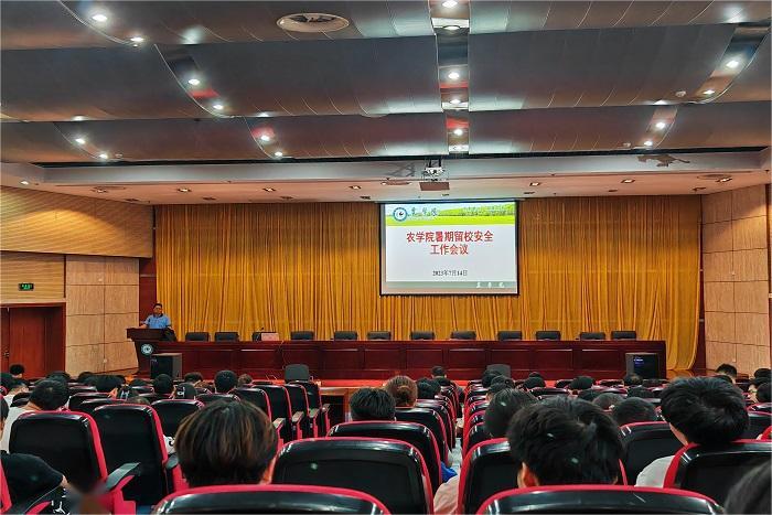 为做好暑期留校学生教育管理与服务工作,确保暑期留校学生安全与各项工作顺利开展,7月14日下午,农学院在会议中心二楼报告厅召开2023年暑期留校学生安全工作教育会议。学院有关教师和暑期留校学生参加会议。