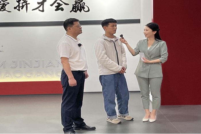 现场,学生代表汪礼伟接受了主持人的采访,喜悦之情溢于言表,他很自豪地说:“我来自安徽科技学院食品工程学院,今天学校组织我们参与此次活动,使我受益匪浅,小岗盼盼食品有限公司规模大、产品线全、研发实力强,让我更加了解了食品产业的工作环境,我也希望能有机会留下来。”