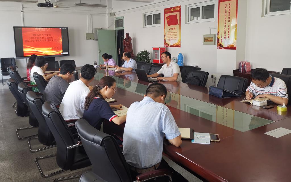 连日来,机械工程学院以系为单位,由各教工党支部牵头,结合召开党史学习教育专题组织生活会,精心组织开展师德教育主题党日活动,要求非党员教师一并参加,传达《安徽科技学院2021年师德专题教育工作方案》主要精神,重点学习习近平总书记关于师德师风的重要论述,并围绕《树立“四有”好老师标准》《做党和人民满意的好老师》《把师德师风作为评价教师队伍素质的第一标准》等推荐学习篇目,立足岗位实际,交流学习心得。广大教师一致表示,要牢记习近平总书记的殷殷嘱托,严格按照“三个牢固树立”“四个引路人”“四个相统一”“六要”和“四有”好老师标准,牢记为党育人、为国育才的神圣使命,自觉加强师德师风建设,努力提升思想政治素质和教书育人本领。