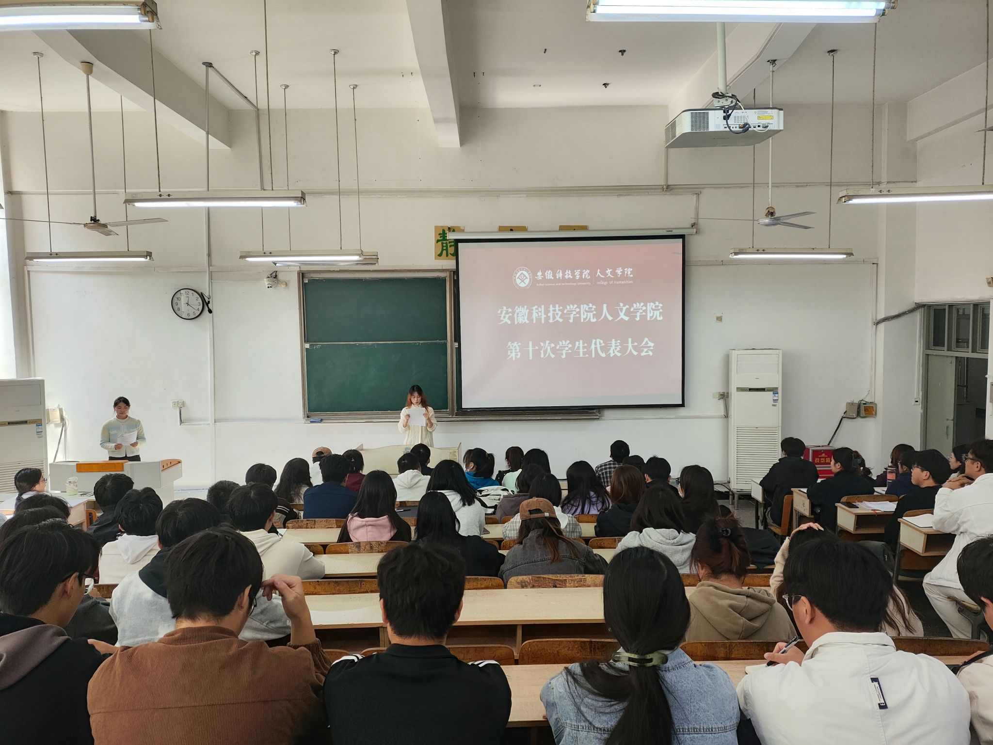 大会预备会议审议通过了《安徽科技学院人文学院第十次学生代表大会议程(草案)》《代表资格审查委员会工作报告》《提案工作委员会报告》《大会主席团名单(草案)》《大会秘书长名单(草案)》《大会选举办法(草案)》《监票人、计票人名单(草案)》;大会正式会议听取并审议通过了学生会主席团成员盛化明所作的《安徽科技学院人文学院第十三届学生会委员会工作报告》;秉持公平、公正、公开的原则,在民主酝酿的基础上,经过代表讨论和投票,大会选举产生了人文学院第十四届学生会主席团成员、第十四届学生会委员会委员和出席安徽科技学院第十七次学生代表大会暨第四次研究生代表大会的代表。徐琦琦在总结时,充分肯定了上届学生会的工作成绩,并对新一届学生会及下一步工作提出明确要求。