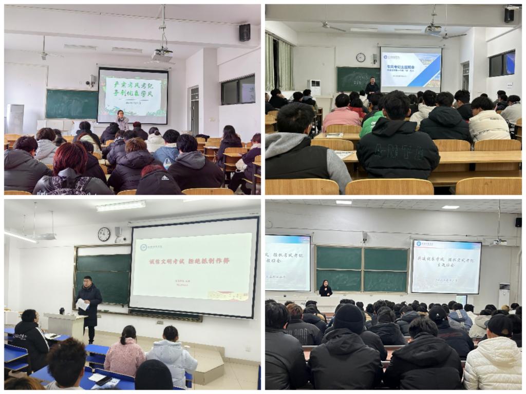 期间,各专职辅导员结合班风班情,召开了“严肃考风考纪争 创优良学风”、“共建优良学风 强抓考风考纪”、“诚信文明考试 自觉抵制作弊”、不做大学第一个吃“纪”的人等主题班会,进一步强调了考风,明确了考纪,让同学们树立正确的价值追求、良好的道德品质,争做德智体美劳全面发展的新时代大学生。(特约通讯员:靳盼 摄影:殷霓林浩 审核:谢宜勤 编辑:李锦)