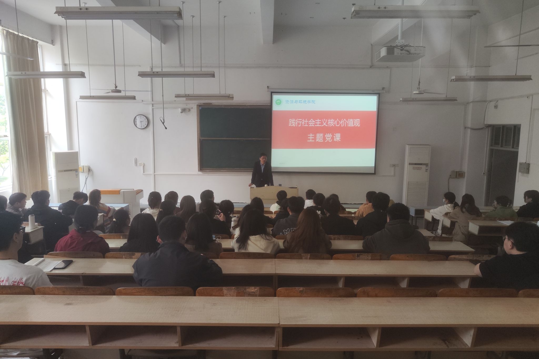 为强化大学生社会主义核心价值观教育,推进入党积极分子培养,4月17日下午,资源与环境学院在求知楼A102开展践行社会主义核心价值观主题党课。本次党课由学院党委副书记沈树周主讲,第60期党校全体学员参加本次党课。