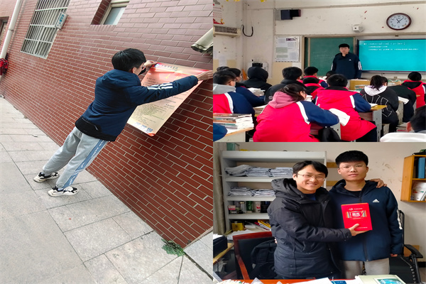 活动中,实践小组成员提前联系到了高中班主任冷文蛟老师,在老师的带领下顺利进入校园。小组成员首先感谢了老师三年以来的辛勤付出和培养,并向老师汇报了在大学里的生活和大学四年以来的目标规划。随后,小组成员前往老师所带班级,通过学校的招生宣传视频及PPT的讲解向同学们介绍了安科的招生政策。在宣讲中,介绍了学校办学历史和近年来获得的巨大成就以及学校对未来办学的规划,让同学们了解了安徽科技学院的大致情况。在之后的提问环节,小组成员细心解答了同学们关于报考志愿以及其他方面的热点问题,同时也向他们讲述安科的大学生活,介绍大学中精彩纷呈的学生活动,冷老师也在此时适时地鼓励同学们努力学习,将来考上理想大学。最后,小组成员在高中学校宣传栏张贴安徽科技学院喜报并合影留念。