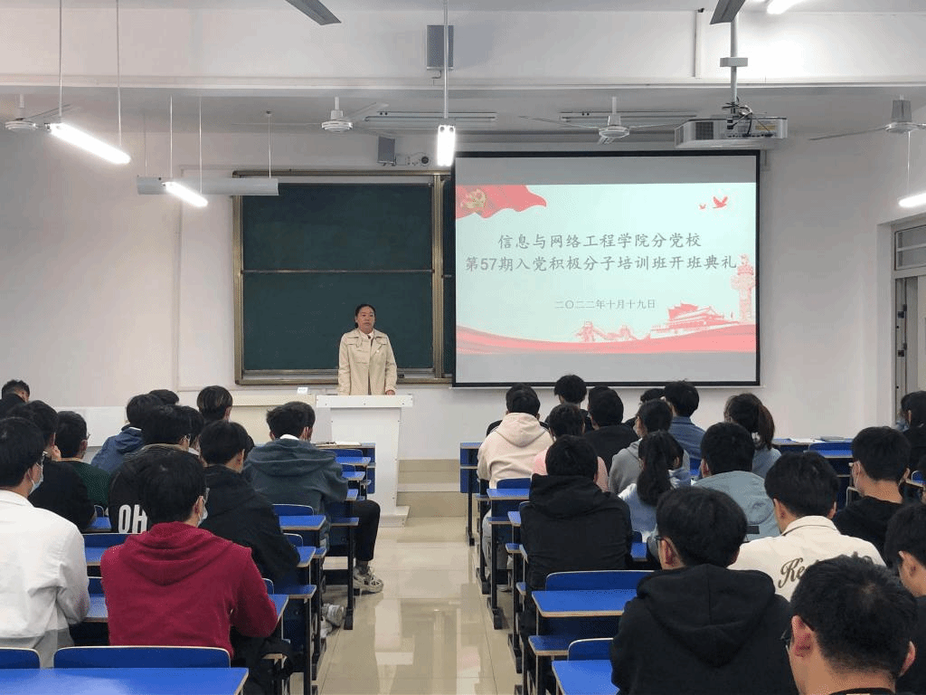 为加强对入党积极分子进行党史党性教育,提高党员发展质量做好党员发展教育工作,10月19日下午,信息与网络工程学院在尚行楼C202举办第57期入党积极分子培训班开班典礼。学院党委副书记、纪委书记韦乃学、专职辅导员李军成、专职辅导员崔北坤出席会议。培训班88名学员参加会议,会议由专职辅导员陈凯主持。
