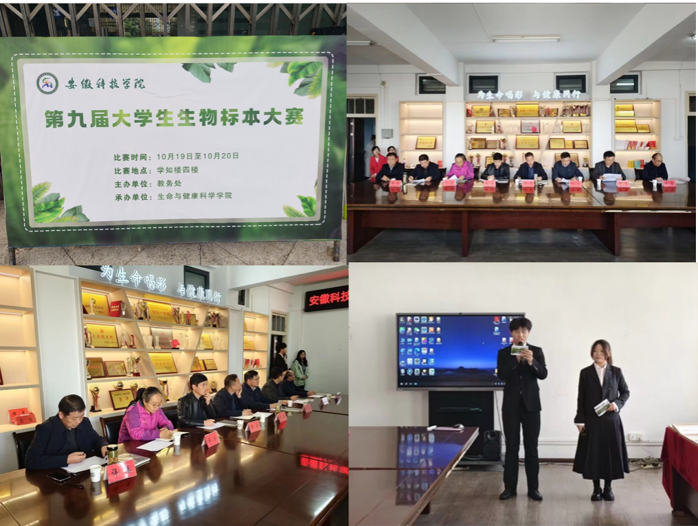 10月19至20日,2024年安徽省大学生生物标本制作大赛安徽科技学院选拔赛在生命与健康科学学院成功举办。本次大赛邀请蚌埠学院食品与生物工程学院院长张斌教授,蚌埠医科大学生命科学学院实验中心主任吴华彰教授,我校教务处副处长高青海教授,农学院胡友军副教授,建筑学院郑艺鸿教授,动物科学学院郭伟娜博士以及生命与健康科学学院孙玉军教授担任此次大赛评委。