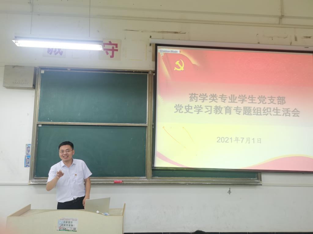 为进一步学习贯彻习近平新时代中国特色社会主义思想,深入开展党史学习教育,7月1日下午,药学类专业学生党支部在求知楼A105召开党史学习教育专题组织生活会,党支部全体党员参加会议,会议由党支部书记姜毅主持。