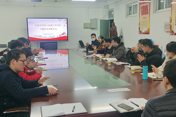 为进一步学习宣传贯彻党的二十大精神,落实有关要求,3月17日下午,机械工程学院在笃行楼409会议室开展“青春践行二十大”主题班会观摩交流活动。机械工程学院党委副书记、纪委书记张程,外国语学院党委副书记、纪委书记张海亮及两院全体专职辅导员出席班会并观摩,主题观摩班会由辅导员张立亮和张薇薇主持召开。