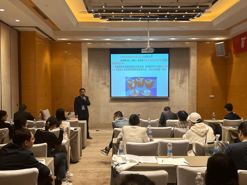 交流会上,汪徐春受邀以《石英砂纯化与尾矿高效利用研究》为题作主题报告,介绍了我校科研团队在高纯石英砂的制备方法、工艺条件与应用及石英砂尾矿综合利用等方面一系列有益的探索和应用成果,引起较大反响。会后,多家企业表达了合作开发意向,进一步扩大了我校石英砂纯化以及综合利用研究的社会影响力。