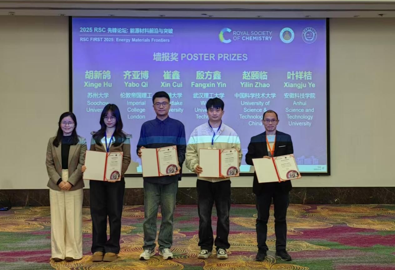 10月31日至11月2日,化学与材料工程学院副院长惠贞贞携叶祥桔、赵红远、周永生和闫浩然多位教师及部分2025级研究生参加在安徽芜湖召开的由英国皇家化学会(RSC)、安徽师范大学、中国科学技术大学和英国皇家化学会旗下EES系列期刊共同主办的2025RSC先锋论坛——能源材料前沿与突破国际会议。叶祥桔副教授荣获大会墙报奖。
