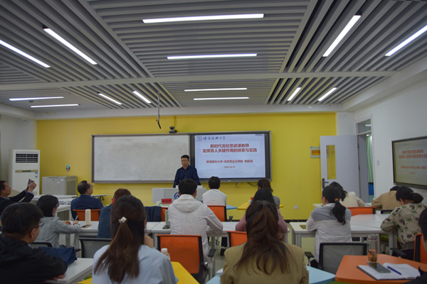 李乐副教授从“一堂课与一次教学比赛”的角度出发,讲解既幽默又不失深度,破解教学难题有事例、有方法,教学问题有针对性,让在座各位老师感受到新时代高校思政课教师浓浓的思政情怀。