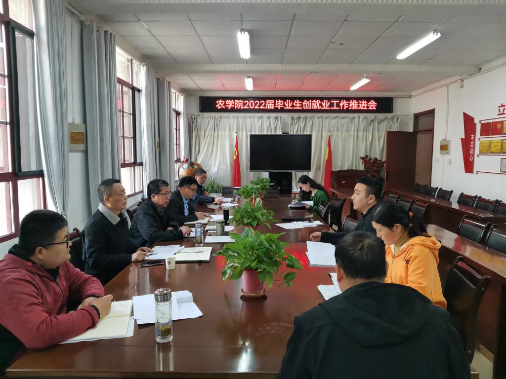 为促进毕业生更加充分更高质量就业,3月11日,农学院召开2022届毕业生创就业工作推进会,农学院党委书记何世潮,党委副书记、院长崔广荣出席会议,农学院招生、就业创业工作领导小组全体成员参加了此次会议。会议由何世潮主持。