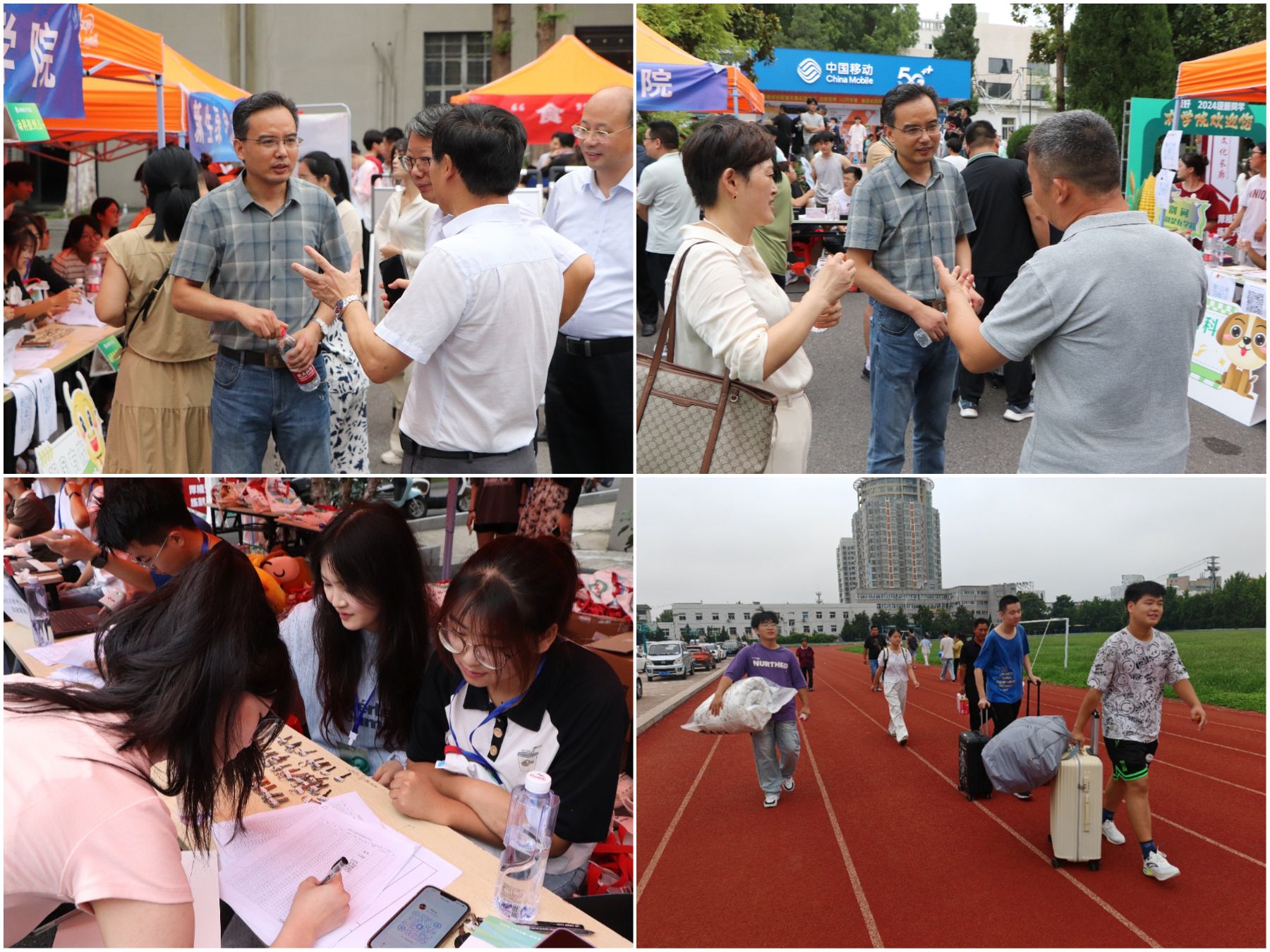 迎新现场,学院党政领导及各新生辅导员多次深入迎新现场看望新生及志愿者,确保迎新工作顺利开展。学院老师们与新生们亲切交谈,并勉励新生要尽快融入大学生活,珍惜宝贵的学习机会,在全新的大学生活中展现青春风采,不负大学美好时光。