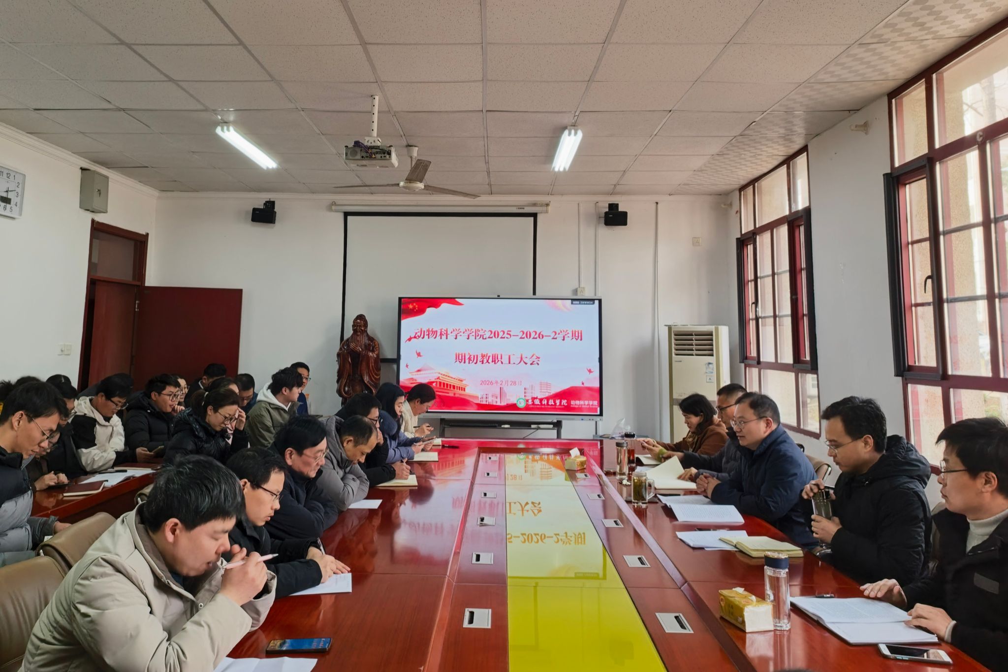 此次全体教职工大会的顺利召开,明确了新学期努力方向与路径,凝聚了学院发展合力,为动物科学学院新一学期各项工作有序、高效开展奠定了坚实的基础。(特约通讯员:王永芳 摄影:王永芳 审核:周金星 甘宗平 编辑:陈晋)