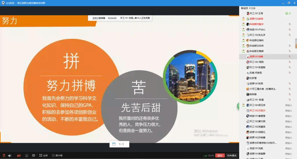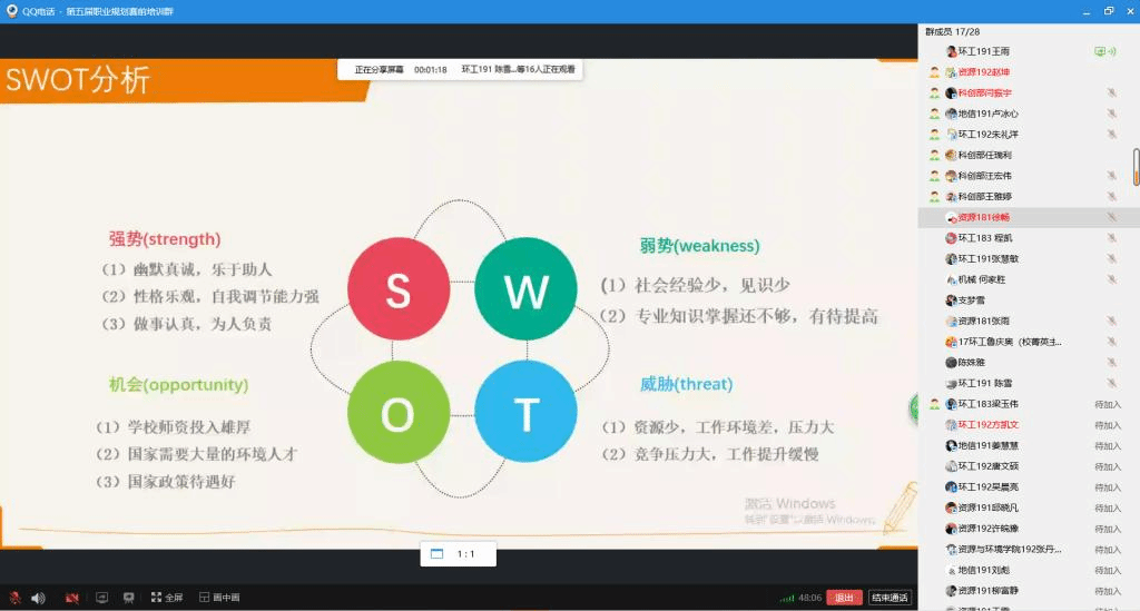 参赛选手以本人的职业规划为主题,涵盖自我认知、职业认知、职业目标与路径设计等内容准备参赛所需材料。比赛以PPT演讲的形式进行,选手们依次通过线上方式进行演讲,参赛选手们个个都有着明确的自我分析、目标分析,并结合专业方向、社会市场需求以及个人特长等多方面因素制定合理的职业目标。评委针对每位参赛选手的简历、职业规划进行点评,同时根据学生的准备资料进行进一步遴选,最终前三名选手进入线上模拟面试环节。