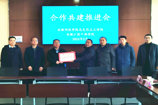 为深入学习宣传贯彻落实党的二十大精神,强化新时代马克思主义理论传播主阵地,更好发挥高校与地方干部学院优势融合。2月28日上午,安徽小岗干部学院与安徽科技学院马克思主义学院在小岗举行合作共建推进会。小岗干部学院副院长罗友和主持。马克思主义学院党总支书记杨仕勇、党总支副书记、院长张德化、副院长张栋、小岗干部学院常务副院长李新龙、副院长罗友和、副院长曾永闯一起共商。
