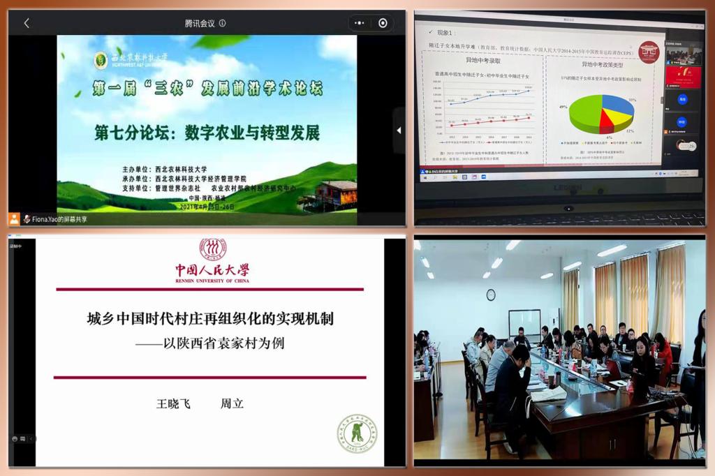 4月25日-26日,管理学院教师和农业管理专业研究生通过腾讯会议参加了第一届“三农”发展前沿学术论坛。此次论坛由西北农林科技大学主办,经济管理学院承办,管理世界杂志社、农业农村部农村经济研究中心提供学术支持。本次会议采取线上(腾讯会议)、线下相结合的方式,受邀嘉宾现场参会,其他学者参与线上讨论。