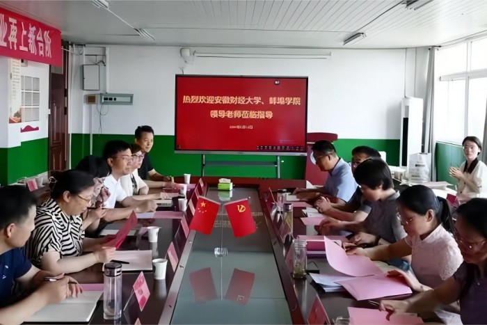 6月14日下午,蚌埠学院外国语学院党委书记赵睿、院长赵生学和安徽财经大学文学院副院长张俊梅一行18人到外国语学院进行交流本科教育教学审核评估工作。外国语学院党政领导、教研室主任、专业负责人等参加了交流会。交流会由外国语学院院长刘萍主持。