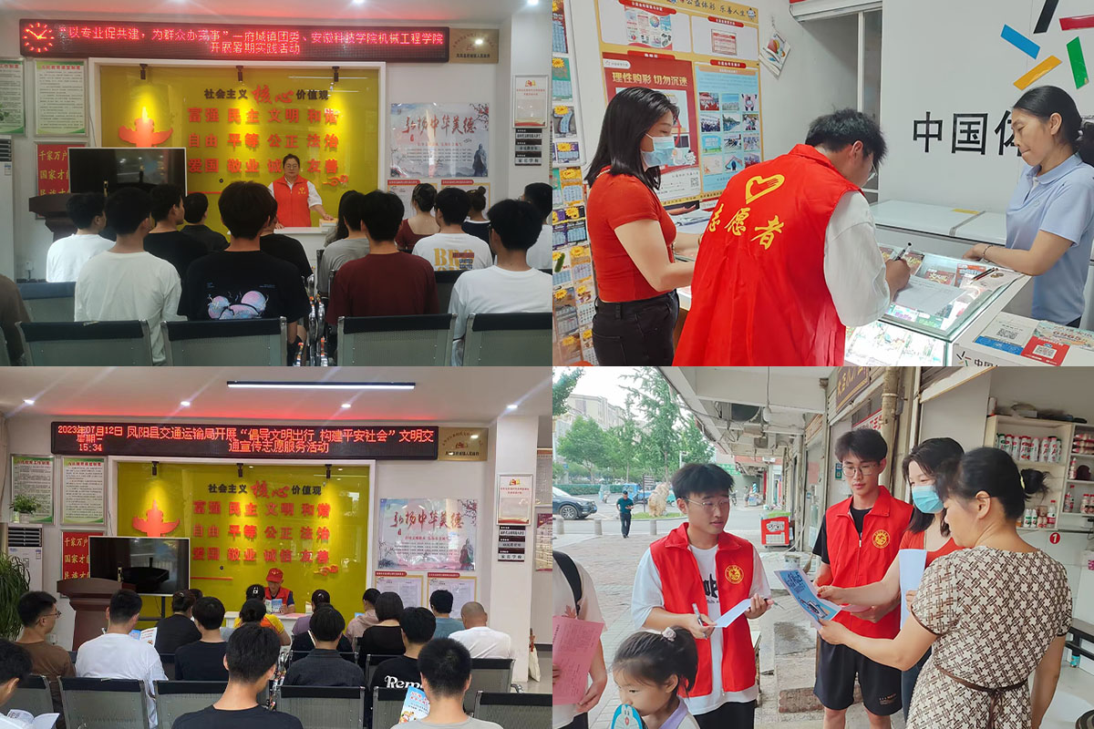 为优化绿色出行结构,全方位提升居民的文明素养,提高在校生的社会实践和服务能力。2023年7月12日,机械工程学院分团委组织20名志愿者前往凤阳县东华社区,开展了以“宣传文明出行”为主题的社区实践志愿服务活动。
