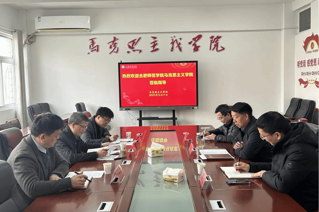 12月11日,合肥师范学院马克思主义学院院长何光辉一行三人来到我校马克思主义学院,围绕思政课教学、硕士点申报和学科建设等内容展开考察交流。马克思主义学院院长张德化、副院长张栋和习近平新时代中国特色社会主义思想概论教研室主任姜勇参加座谈会。
