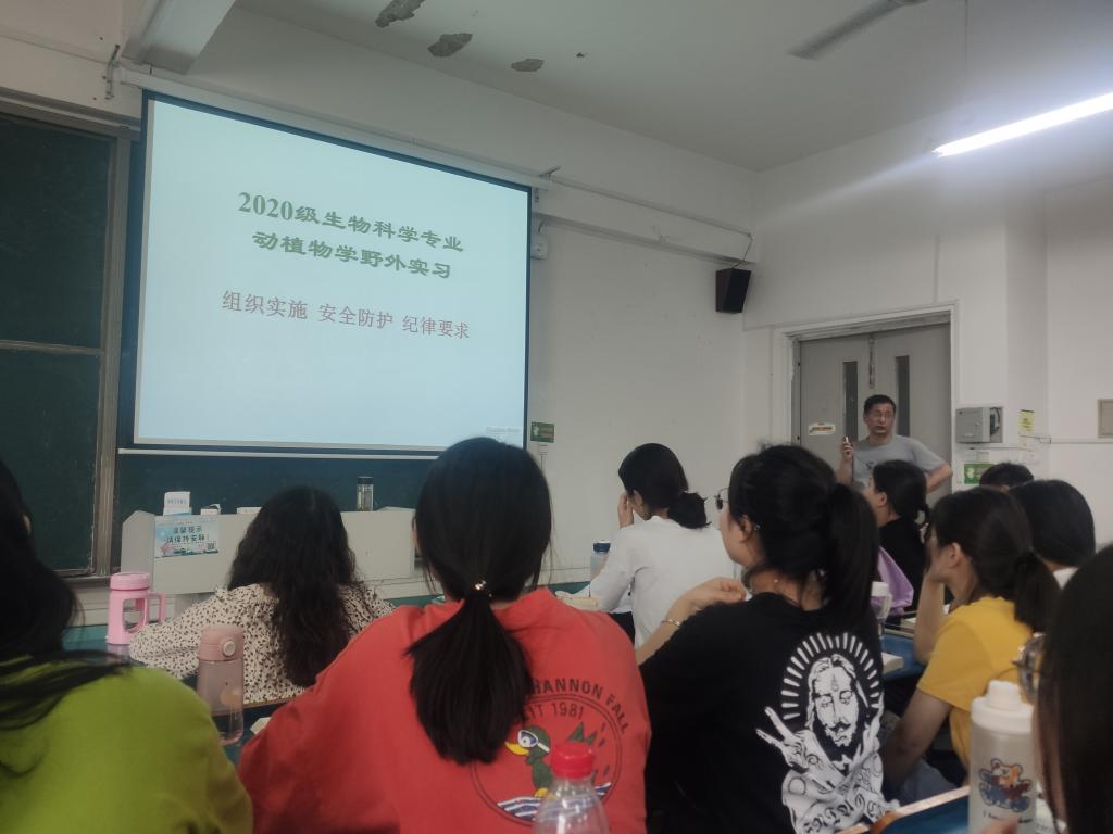 为进一步帮助学生适应实习生活、顺利完成实习技能培训工作。5月25日,生命与健康科学学院在新知楼A106教室召开2020级生物科学专业动植物野外实习动员大会。学院党委书记詹学文、副院长陈浩、带队教师王松教授以及2020级生物科学专业全体同学参加本次野外实习动员大会。