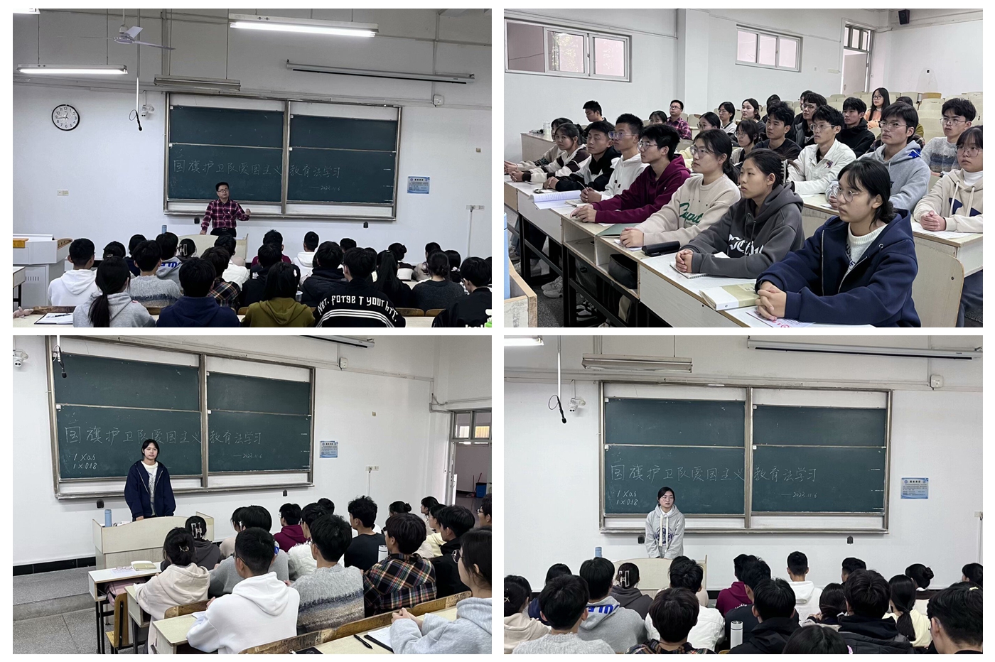 为加强校国旗护卫队团支部建设,强化理论武装,校国旗护卫队分别于11月8日在龙湖校区致知楼B108教室、11月6日在凤阳校区求知楼A107教室开展集中学习爱国主义教育法主题团日活动。党委学工部秘书、校国旗护卫队指导老师石志成应邀参加,国旗护卫队全体队员参加学习会并分享学习心得体会。