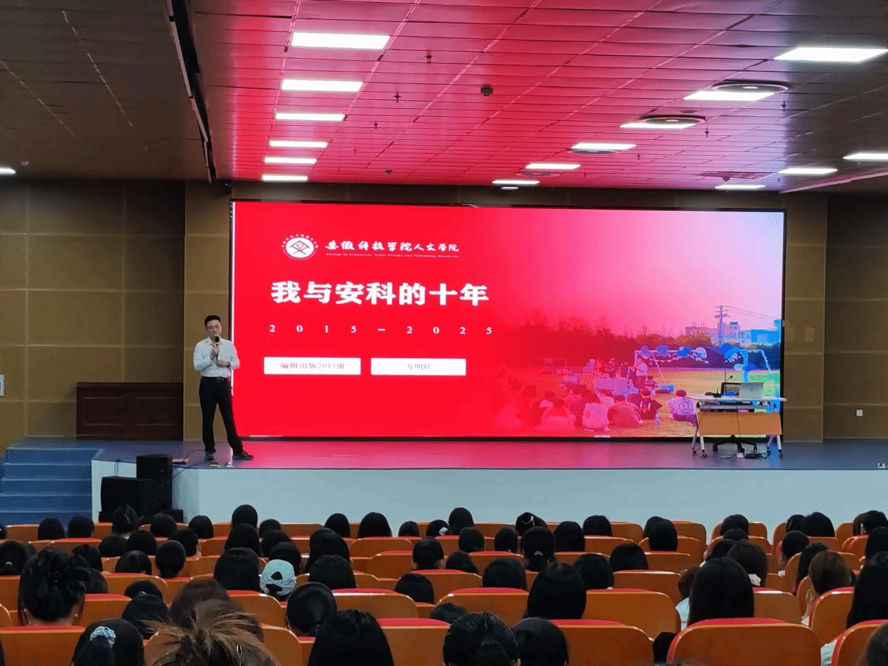 为帮助2025级新生全面了解学校历史,深刻感悟校史底蕴,厚植爱校荣校情怀,强化青年学子的责任担当,9月25日下午,人文学院在滁州校区图书馆二楼报告厅举办“我与安科的十年”校史主题报告会。学院2025级全体新生参会,报告会由学院党政办公室副主任方明旺主讲。