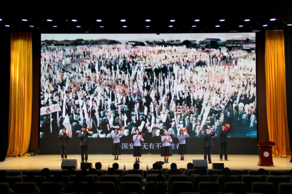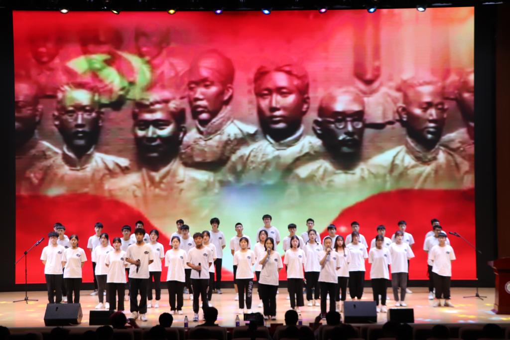 一首首脍炙人口的红色歌曲,引燃了全场师生的激情,不断将晚会推向一个又一个高潮,红色旋律跳跃在耳边,爱国之情激荡在心间,颂党之恩融合在歌声中,同学们或戎装英姿、或盛装登场,他们载歌载舞,用豪迈、动情的歌声表达着对党的热爱,赞颂中国共产党成立100年来取得的伟大成就。