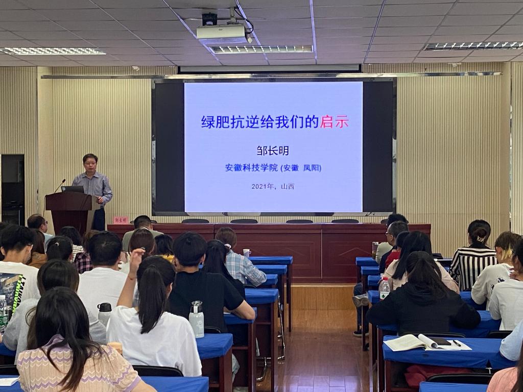 14日下午,李孝良一行与山西农业大学资源与环境学院进行了工作交流,党委书记陈斌、副院长刘奋武、副院长程永钢、副院长李廷亮热情接待,双方就就一流专业建设、人才培养、社会服务、与地方农科院的合作等方面进行了深入交流,并参观了学院实验教学中心、学科平台。应刘奋武邀请,李孝良和邹长明分别作了题为《皖北麦玉轮作区化肥减量增效技术研究》《绿肥抗逆给我们的启示》的学术报告,同山西农业大学资源与环境学院师生就化肥减量增效技术、绿肥抗逆品种选育等进行了深入交流。