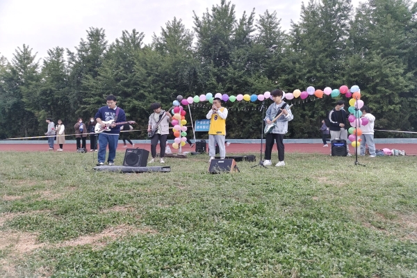 为丰富同学们在学校封控期间的课余文化生活,外国语学院于4月16日晚在学校东区操场举办了“乐”动青春音乐会。学院党委书记蔡为青、党委副书记张海亮、党政办主任陈慧中、专职辅导员张薇薇亲临现场,和同学们一起布置现场,融入音乐会的氛围之中。