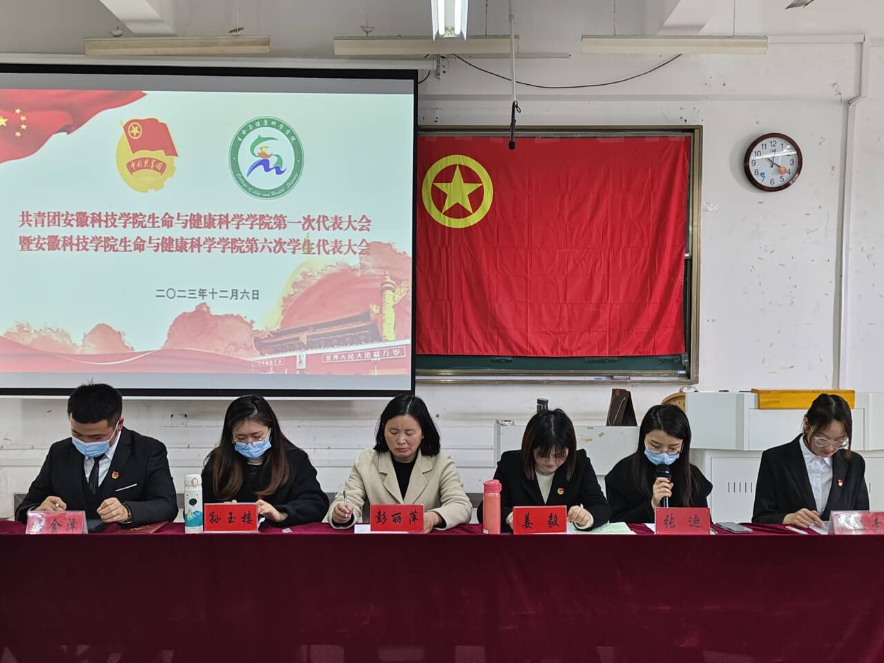 在顺利完成各项议程后,共青团安徽科技学院生命与健康科学学院第一次代表大会暨安徽科技学院生命与健康科学学院第六次学生代表大会在团歌声中顺利闭幕。