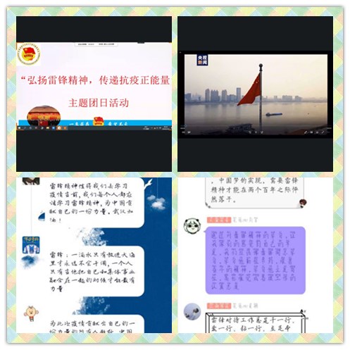 建电182、光电183、电信191等班级团员青年通过线上讨论自己对雷锋精神的理解并分享在疫情期间的见闻与感受。