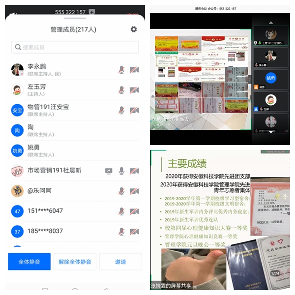 为营造优良班风学风,进一步增强班级凝聚力,5月27日下午,管理学院通过腾讯会议平台成功举办第九届班级风采大赛。院党总支书记姚勇出席本次活动。院党总支秘书、分团委书记陶漫,分团委副书记汪琦、李永鹏,辅导员方辛出席本次比赛并担任评委。活动由汪鑫主持。