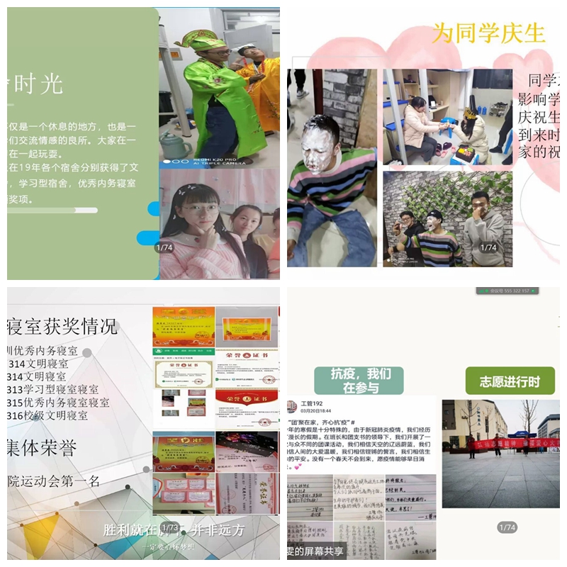 经过一个多月的策划准备,本次班级风采大赛最终以视频录制的方式先上呈现,分为班级PPT汇报和节目汇演两个环节。班级PPT汇报中,各班级从班级团支部和集体活动组织、专业学科竞赛参与、学习型组织创建、青年大学习学习情况、集体和个人奖项、班徽班歌等方面展示了班级集体风采和多样性发展情况。节目汇演主要以歌曲合唱、朗诵、说唱等形式呈现,各班级分别围绕“心有同感,恩惠于心”、“怀抱青春,追逐梦想”、“青春不息,奋斗不止”、“加油,向未来”、“青春有你,不负韶华”、“筑梦青春,最是芳华”等主题组织班级展演汇报,每一个节目都显示出同学们对于班级和学校的热爱、对于同学之间情谊的珍视、对于未来的憧憬。
