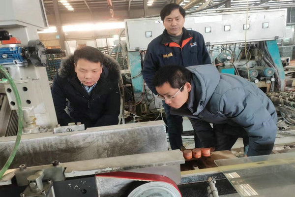 郑斌等对陈丰一行表示了热烈的欢迎,感谢学院在人才培养、设备升级改造等方面为企业提供支持,并详细介绍了高洁特玻璃制品有限公司的现状和发展前景;陈丰就安徽科技学院的办学历史、概况、学科、人才队伍、服务地方产业发展及未来发展等情况进行了简要介绍,同时介绍了机械工程学院的办学规模、专业设置、人才培养、师资队伍、开展“入企下乡”专项行动等情况,感谢滁州市高洁特玻璃制品有限公司对学院产学研工作给予的大力支持;校企双方就光伏玻璃柔性制造工艺方法、钢化炉温度及风速智能控制以及光伏玻璃加工数字化车间等方面开展联合技术攻关达成了共识,期望发挥双方各自优势,围绕企业面临的问题,在项目设备升级改造、人才培养及项目申报等方面开展全方位深层次务实合作。