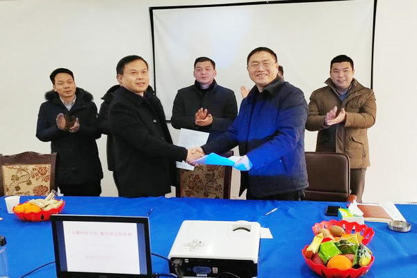 为进一步推进学院2022年“入企下乡”专项行动工作成效,1月15日下午,学院党委书记、院长陈丰,党委副书记、纪委书记张程,党委委员、副院长张华带领曾其良博士科研团队赴滁州市高洁特玻璃制品有限公司签订产学研合作协议。
