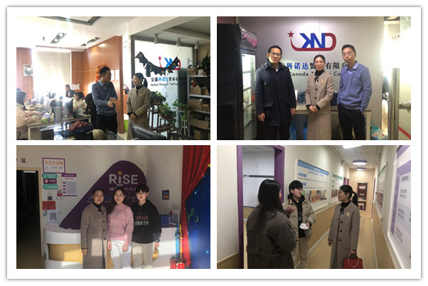 在安徽科诺达贸易有限公司,蔡为青受到了我校计算机专业2010届优秀毕业生、董事长张磊、总经理张宝友等人的热情接待,听取了在单位工作的部分毕业生和企业负责人对学校的人才培养方面的意见和建议,双方就加强校企合作进行了深入的探讨。在合肥瑞思英语培训学校有限公司,蔡为青实地参观了高新校区的建设情况,看望了学院优秀毕业生,并与校区负责人程晶晶和人事负责人张迎花结合当前的人才需求情况和毕业生实习实训安排进行了深入沟通。在安徽邦学堂教育科技有限公司,公司董事长、我校生物专业2004届优秀毕业生胡阳春向蔡为青介绍了公司概况、发展思路、品牌优势和人才需求情况;在安徽合肥恒浩科技有限公司,公司总经理、我校生物技术专业2009届优秀毕业生陈胜杰向蔡为青介绍了近年来国际政治经济形势对外贸行业影响,公司目前基本运营情况,下一步的发展思路等。蔡为青在听取创业校友的情况介绍后,勉励他们,母校是坚强的后盾,充分利用母校各类资源,加强与母校的交流与合作;不断创新发展思路,在新的发展阶段,有新的发展理念,新的发展目标,新的发展格局,才能适应新的国际国内政治经济形势。