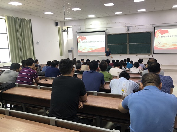 为科学总结暑期工作、有效部署学院新学期重点工作,8月27日上午,信息与网络工程学院在致知楼C111召开全体教职工大会。信息与网络工程学院党总支书记王振其、副院长余宏杰及全体教职工参加会议。会议由王振其主持。