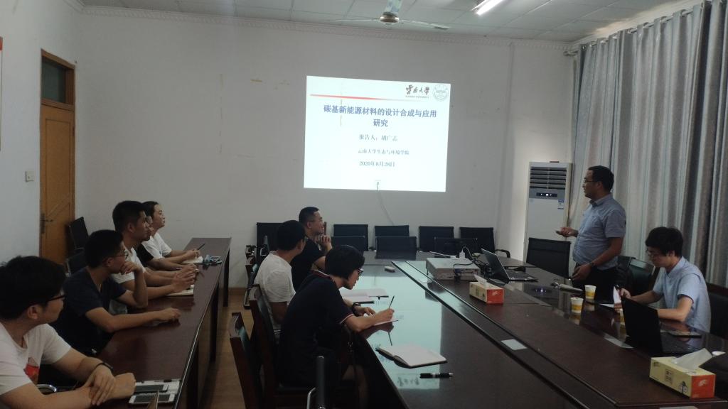 8月28日下午,资源与环境学院邀请云南大学高原湖泊生态与治理研究院胡广志博士到我校作了题为《碳基新能源材料的设计合成与应用》专题报告。报告会在资源与环境学院院会议室举行,资源与环境学院教师、硕士研究生聆听了报告。报告会由环境科学与工程系主任范行军博士主持。
