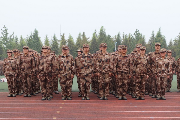 一踏入操场,就可以看到一群身穿迷彩服的活力青年整齐的站着军姿,喊着响亮的口号,唱着激昂的军歌。“齐步——走”教官铿锵有力的声音在操场上回荡。