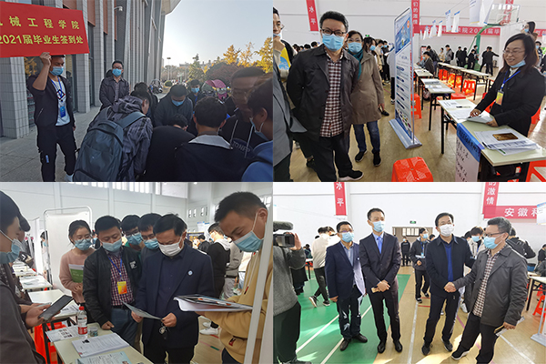 11月14日上午,安徽省2020年农林类高校毕业生就业市场暨安徽科技学院2021届毕业生秋季招聘会在凤阳校区西区体育馆举行。机械工程学院院长陈丰、党总支书记张严政、党总支组织员路云以及全体毕业班辅导员、专业课教师等,深入现场看望、指导参加招聘会的毕业生,并与企业人员进行深入交流。
