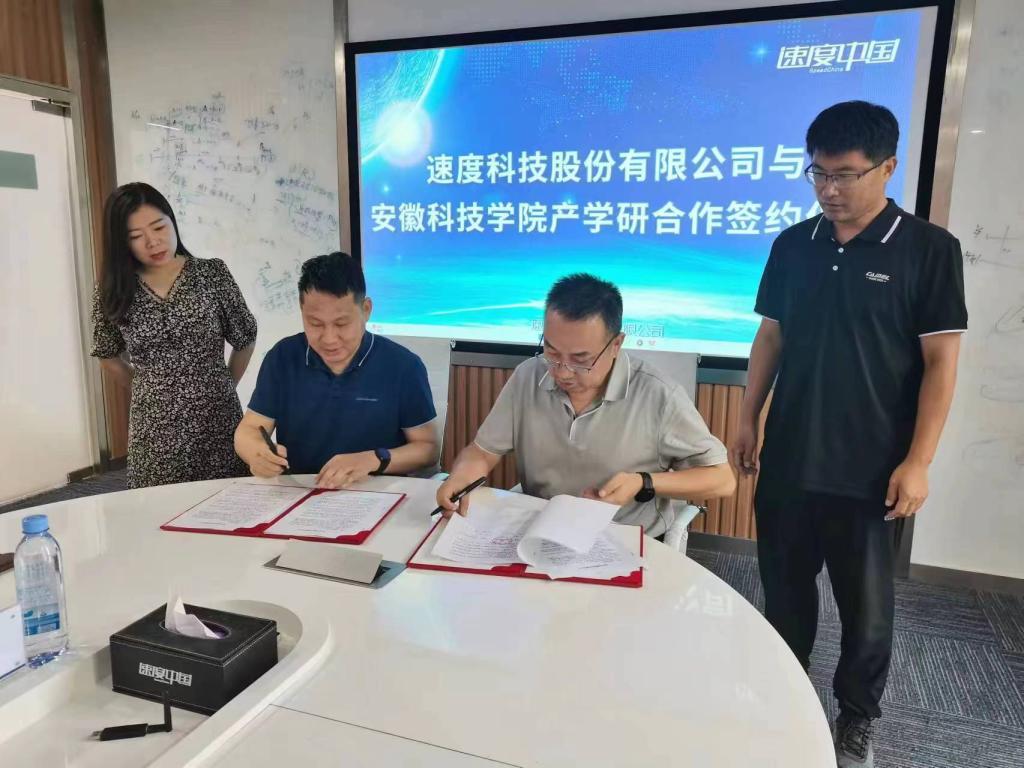 仪式上,李孝良和徐云和代表校企双方签订了产学研合作、校外实践教学基地、安徽科技学院研究生联合培养基地、“速度中国”冠名班协议书。此次协议的签订是我院校企合作进入新领域的重要标志,这对学院今后的人才培养、教学改革都有着十分重要的意义。