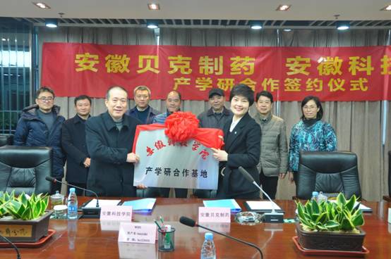会议结束前,双方代表签署了安徽贝克制药-安徽科技学院产学研合作协议。