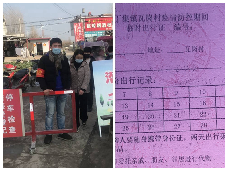 学生党员主动作为,参与一线防控值守。学院学生党员在疫情发生后主动站出来,向当地党组织请求参与疫情防控宣传、路口值守和排查登记等一线工作。动检支部学生党员葛宁从年后开始在家乡凤台县丁集乡瓦岗村参与防控工作,根据村党支部安排在村里发放宣传单、劝说聚集群众、每天在村口检查点值班,24小时严防死守。动医学生支部党员胡志钢1月28日在看见学校转达的《安徽省委的一封信》后,主动与包片村干联系,希望能够帮助做些志愿服务,为打赢这场疫情防控阻击战贡献出自己的一份力量。1月30日加入村里成立的的党员先锋队之后,按照村里的要求,积极向所在村民组村民宣传防控疫情的知识,劝导大家尽量不要走动。2.1-2.12日,村书记根据志愿服务队实际情况,分批安排值守人员。早上七点多前往两村交界处设立的疫情防控交界点,劝导进村走亲戚的外来车辆、人员立即返回。提醒未佩戴口罩的行人做好防护,对需要出去购买生活必需品的村民测量体温并做好登记。2.21日协助联防长做好对外地三返人员的摸底排查,帮助村民组居民安装使用皖事通APP,做好居民健康登记工作。