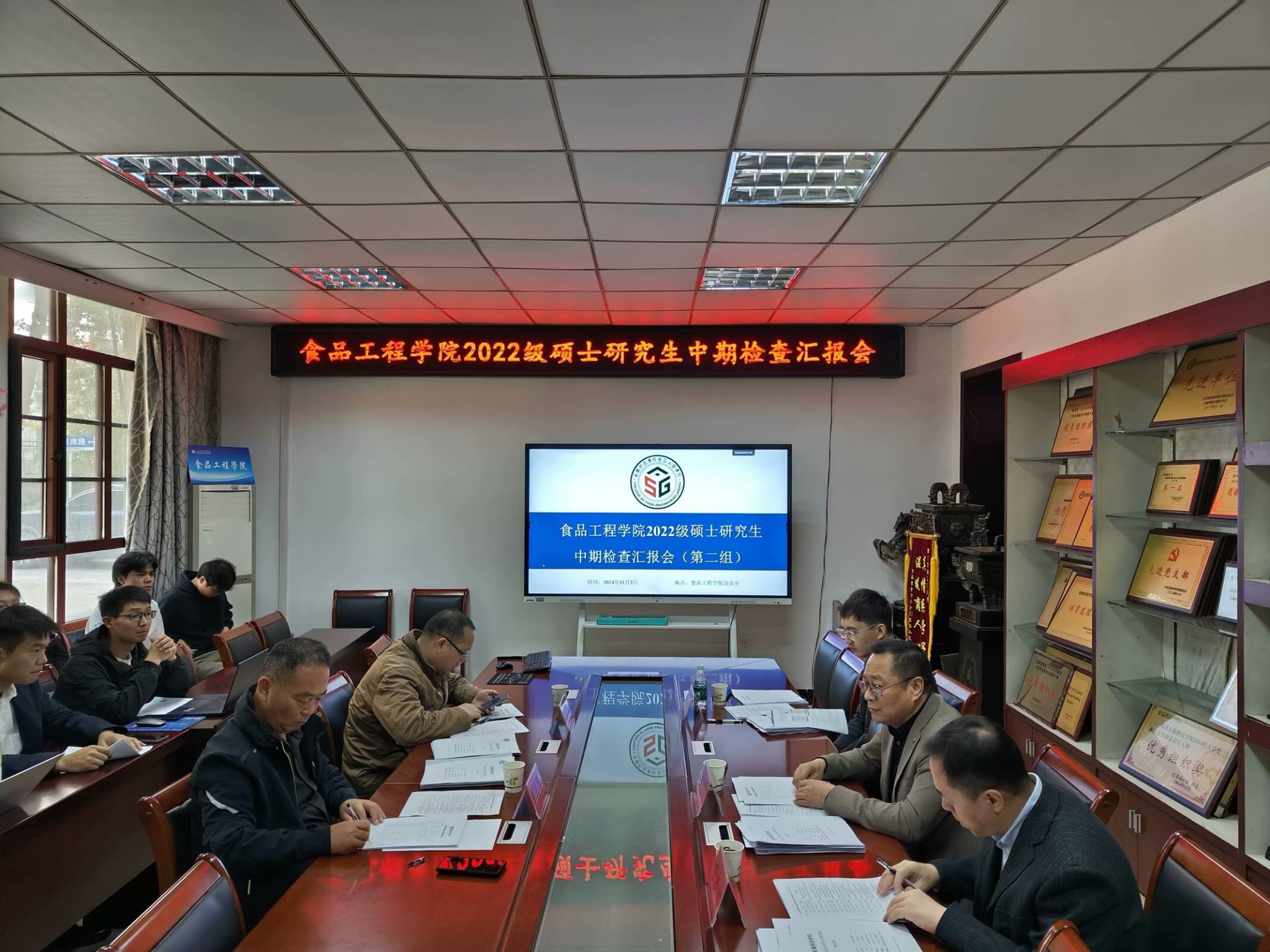 11月3日,食品工程学院在东办公楼104、110和力行楼211举行2022级硕士研究生中期检查汇报会。江苏省农业科学院张存政研究员、叶昱辉副研究员,安徽省农业科学院徐雅芫副研究员,食品工程学院杜传来教授担任考核组专家。杜传来教授、张存政研究员、李景军研究员分别担任所在组组长,2022级全体硕士研究生参加中期检查汇报会。