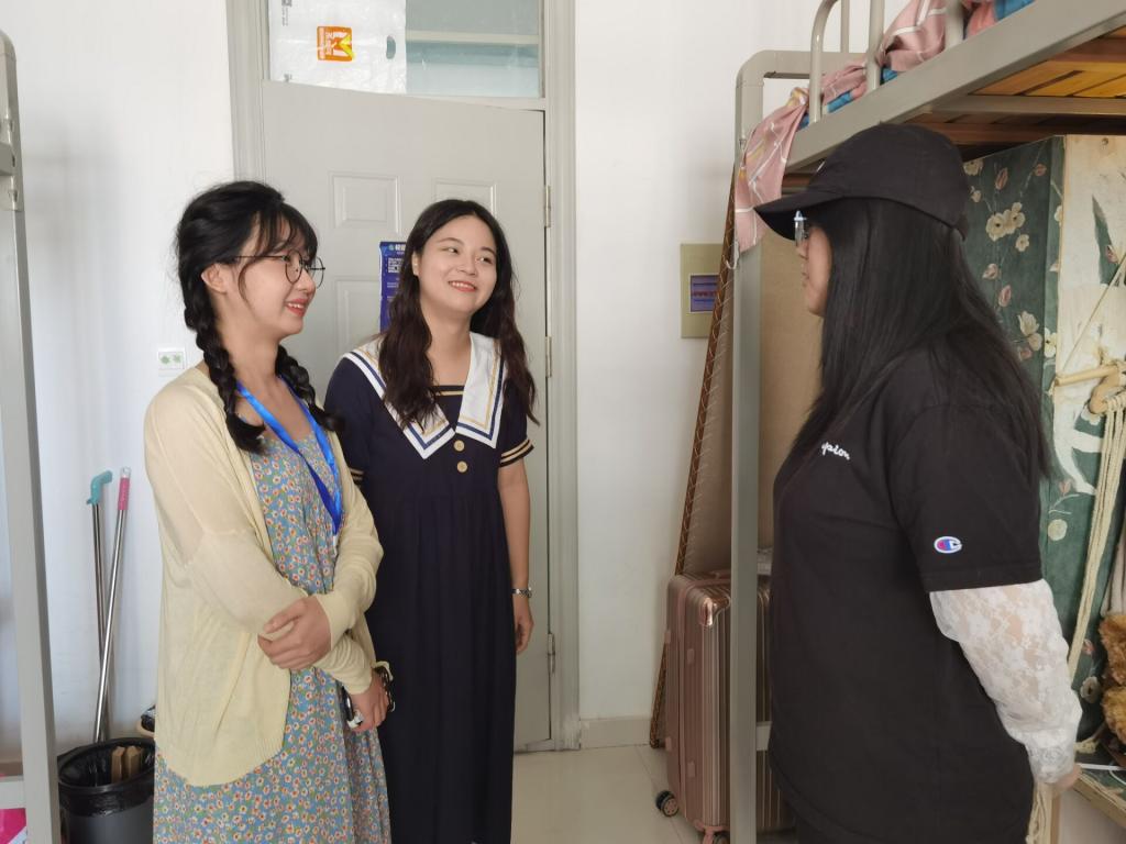 在宿舍整理好床铺简单收拾好后,晚上,齐嘉蕊的辅导员助理王洁、张安琦两位学姐又专门来到宿舍看望她,与她热情的拉起了家常,鼓励她好好享受大学生活,积极参与集体活动,让自己的大学过得更加充实美好有意义,一下子又让齐嘉蕊感受到了新家庭的温暖,想家的思绪也一下子缓解了许多。