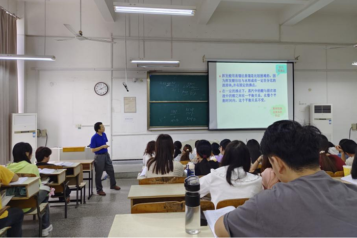 “桑老师是我们第一位认识的专业课老师,他很平易近人,而且自带儒雅气质,是一位很受同学们敬重的学者。”食品质量与安全专业2021级本科生陆清这样形容桑宏庆。在课堂中,桑老师总是能以深入浅出的语言阐释复杂的专业术语,力争让每个学生都能听得进、记得牢、学得好。他说:“课堂是我的主阵地,站上三尺讲台,面对求知若渴的学生们,我的内心就不断驱使着我要上好每一节课,上能让学生们受益终生的课。”“现在我们所学的内容,也是国际国内研究的热点问题,目前......”除了讲解课本原有知识外,桑老师还会结合所学内容的最新研究进展给同学们进行补充说明,带来一场精彩的学术分享。“最让我敬佩的是,每次我们在课下时去找桑老师解答问题,不论是否繁忙,他总会抽出空来回复。还记得有一次,我们需要写课程论文,由于是第一次接触,同学们都有许多疑问,他都会不厌其烦地与我解释,班级同学都觉得桑老师学术造诣深厚,但在同学们面前又很和蔼可亲。”陆清补充道。