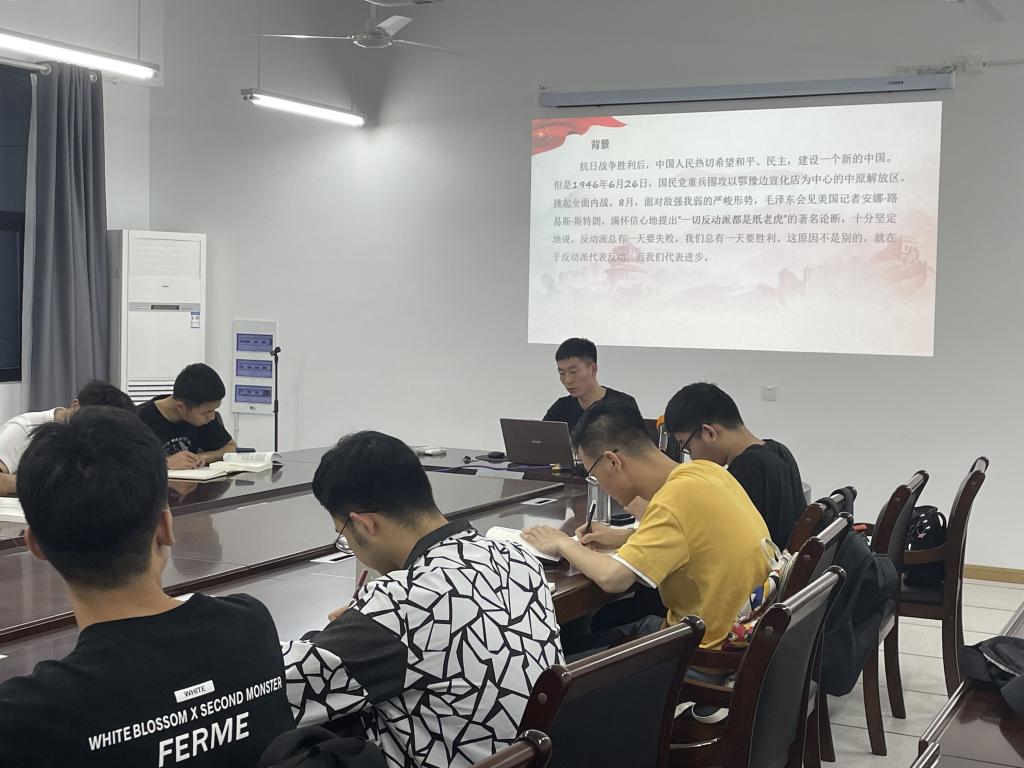 根据《信息与网络工程学院学生党员“学史明理”读书研讨班实施方案》安排,学生党员张奇南、马郑凯、王蝶,围绕《中国共产党简史》,通过领读、PPT汇报、观看相关史料视频等形式开展党史学习,领学了重庆谈判和争取和平民主的斗争、粉碎国民党的军事进攻和第二条战线的形成、人民解放军转入战略进攻、夺取全国胜利纲领的制定实施和人民民主统一战线的巩固扩大、伟大的战略决战和国民党反动统治的覆灭、党的七届二中全会和筹建新中国等内容,与会党员根据学习内容,积极开展研讨。