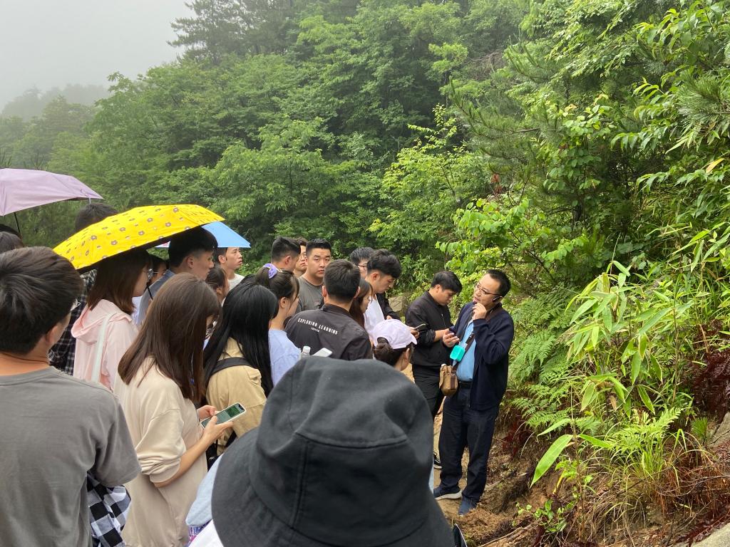 在为期四天的野外实习中,同学们实地鉴定了大别山花岗变质岩、钾长片麻岩等岩石特征,观察了沟谷流水地貌特征及片状流水形成的坡积物特征。结合不同海拔山区气候、植被条件的差异,比较了黄棕壤、山地棕壤和山地草甸土等自然土壤剖面、成土过程和成土环境特征,进一步掌握了山地土壤垂直分布特征,有效促进了学生对地质地貌学、土壤地理学、土壤学等课程知识的融会贯通。实习期间,同学们还参观了鹞落坪国家自然保护区动植物标本馆和红二十八军军政遗址,在认识保护区丰富自然资源的同时,深刻缅怀革命先烈丰功伟绩,传承大别山革命精神。(特约通讯员:吴红宝 摄影:刘健健 审核:沈树周 编辑:张威)