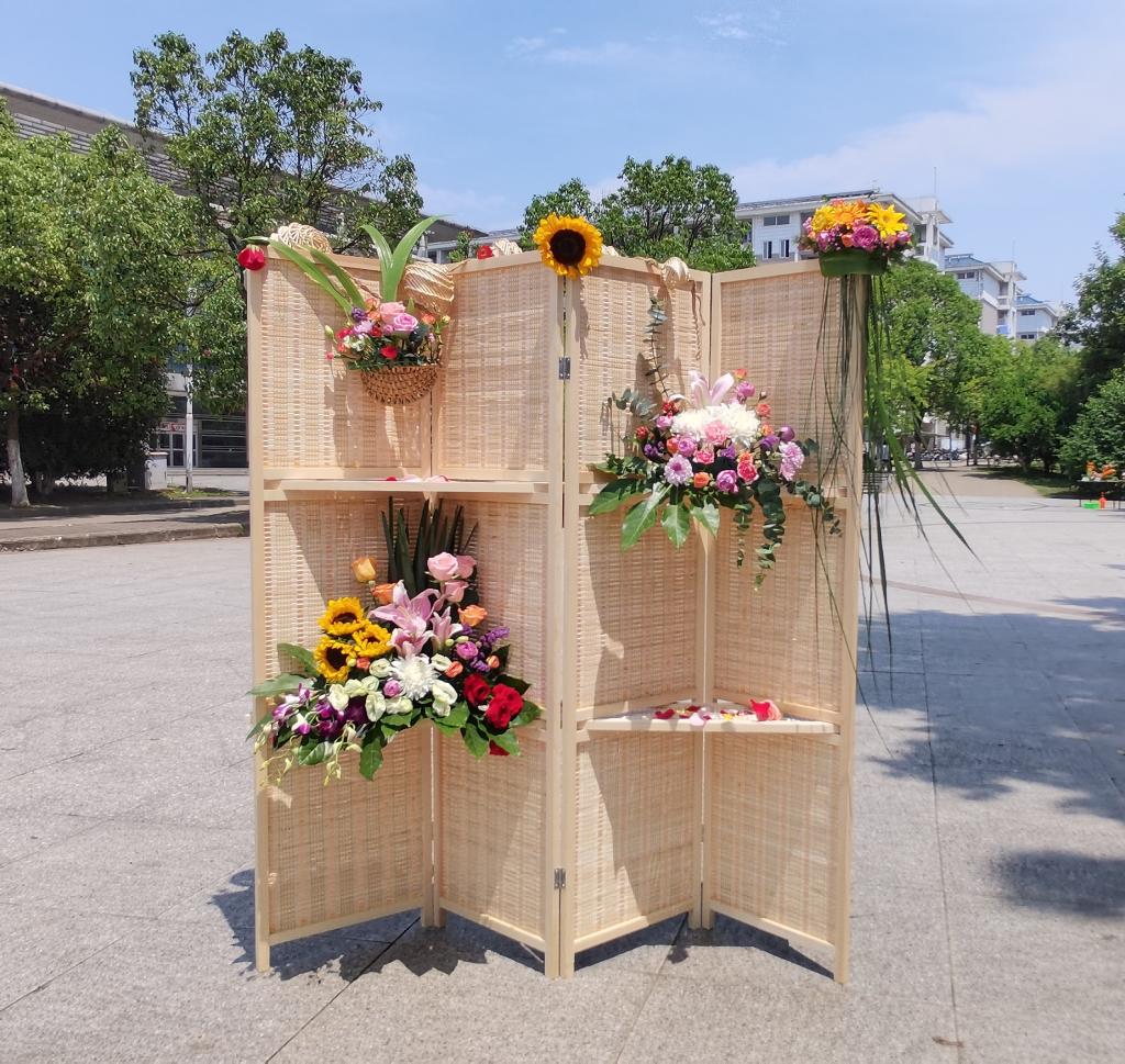 插花展以大型作品“百年之路”展开,该作品来自园艺系教工党支部隋益虎老师的创意,由汪道兵老师安排园艺19级二班的李洋洋、童朝云和王麒麟同学精心插制而成,寓意带领大家共同学习党史,回顾百年之路,共享百年庆典。依次展示的作品有体现父爱亲情的“守望”;展示校园学习生活的“花开成诗,花落成词”;解读当代青年心灵世界的“W的两个世界”“取舍”;表现和谐生态环境的“夏日幸运”等。作品展以装点着鲜花、彰显美好生活的屏风收尾,该作品由园艺19级二班的张云、王靖涵和许承轩共同完成。